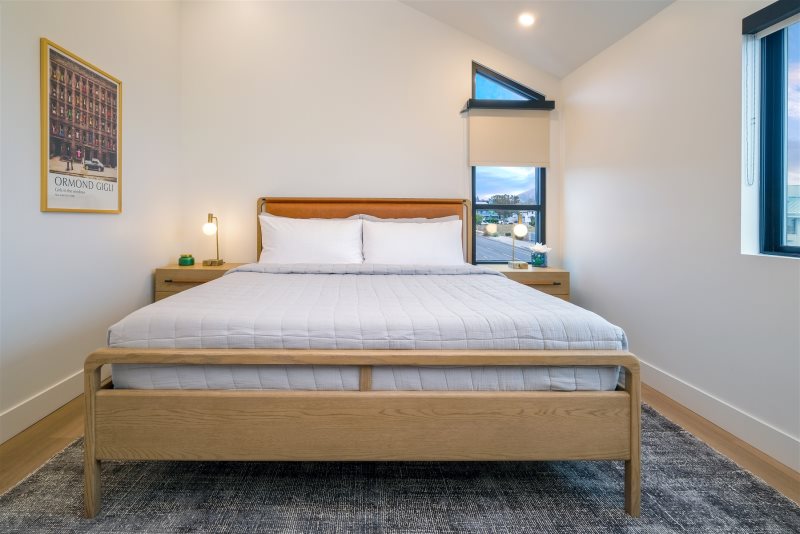 Inside, this suite pairs modern sophistication with unique character. Vibrant windows fill the living space with natural light, highlighting the stylish furnishings and open layout. The plush king bedroom and queen sleeper sofa offer flexibility for couples or families, while the suite’s thoughtful details make it as comfortable as it is striking.