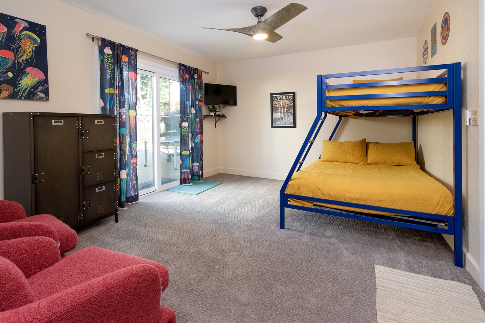 • Third bedroom includes a twin over full bunk bed, flat screen TV with DVD player and nice additional seating area with access to the back patio.