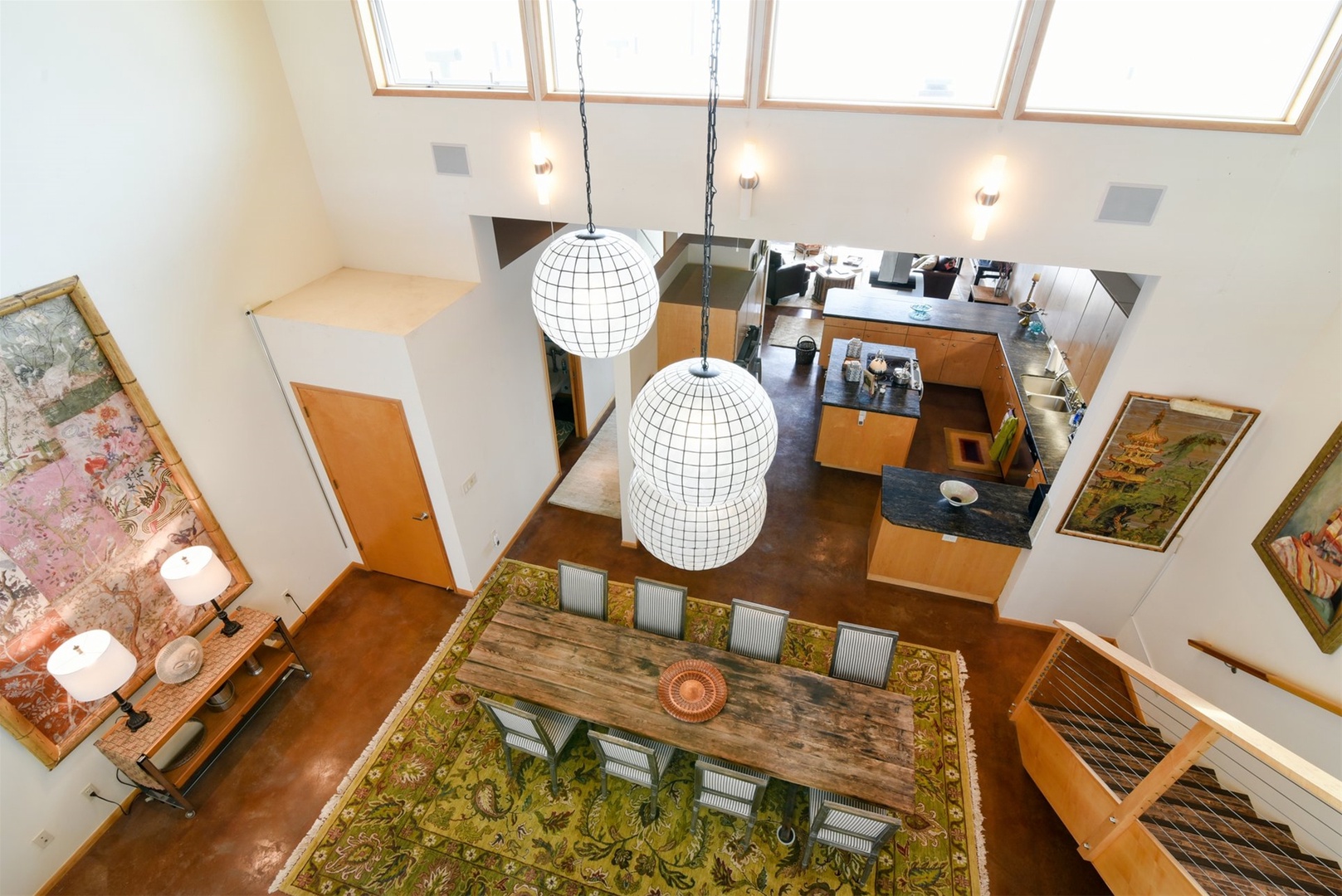This rental is only accessible by stairs, 1 flight to the main living level and 1 flight to the lofted bedroom.