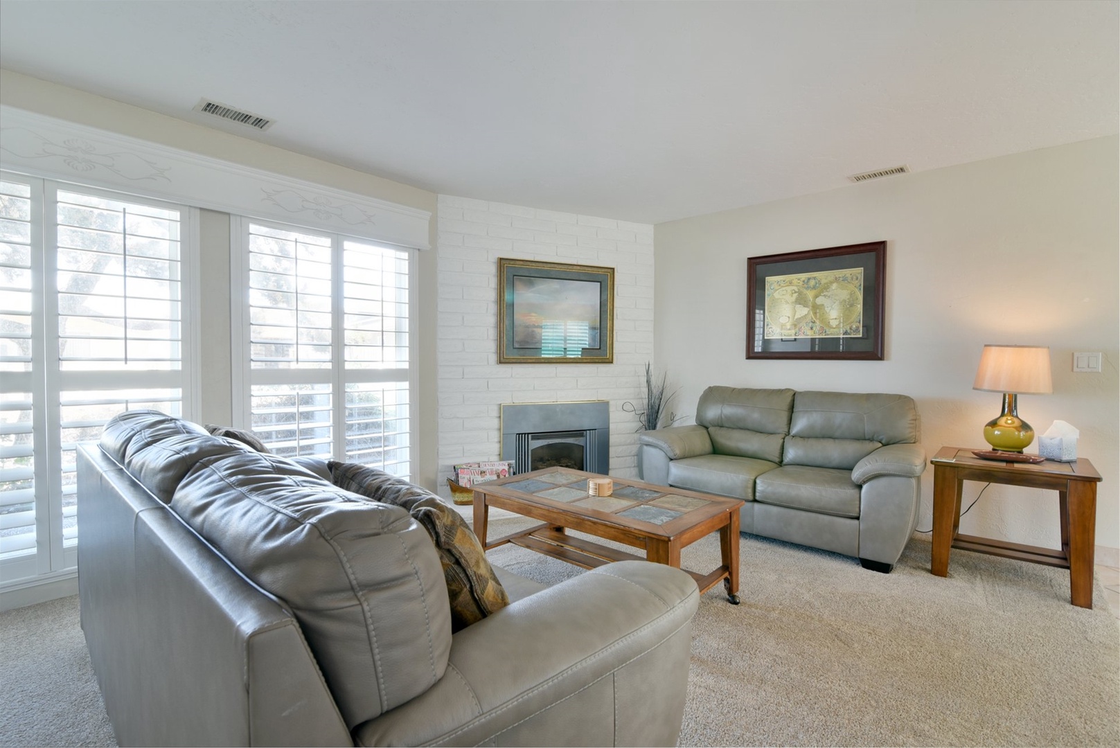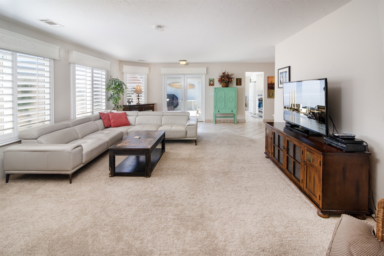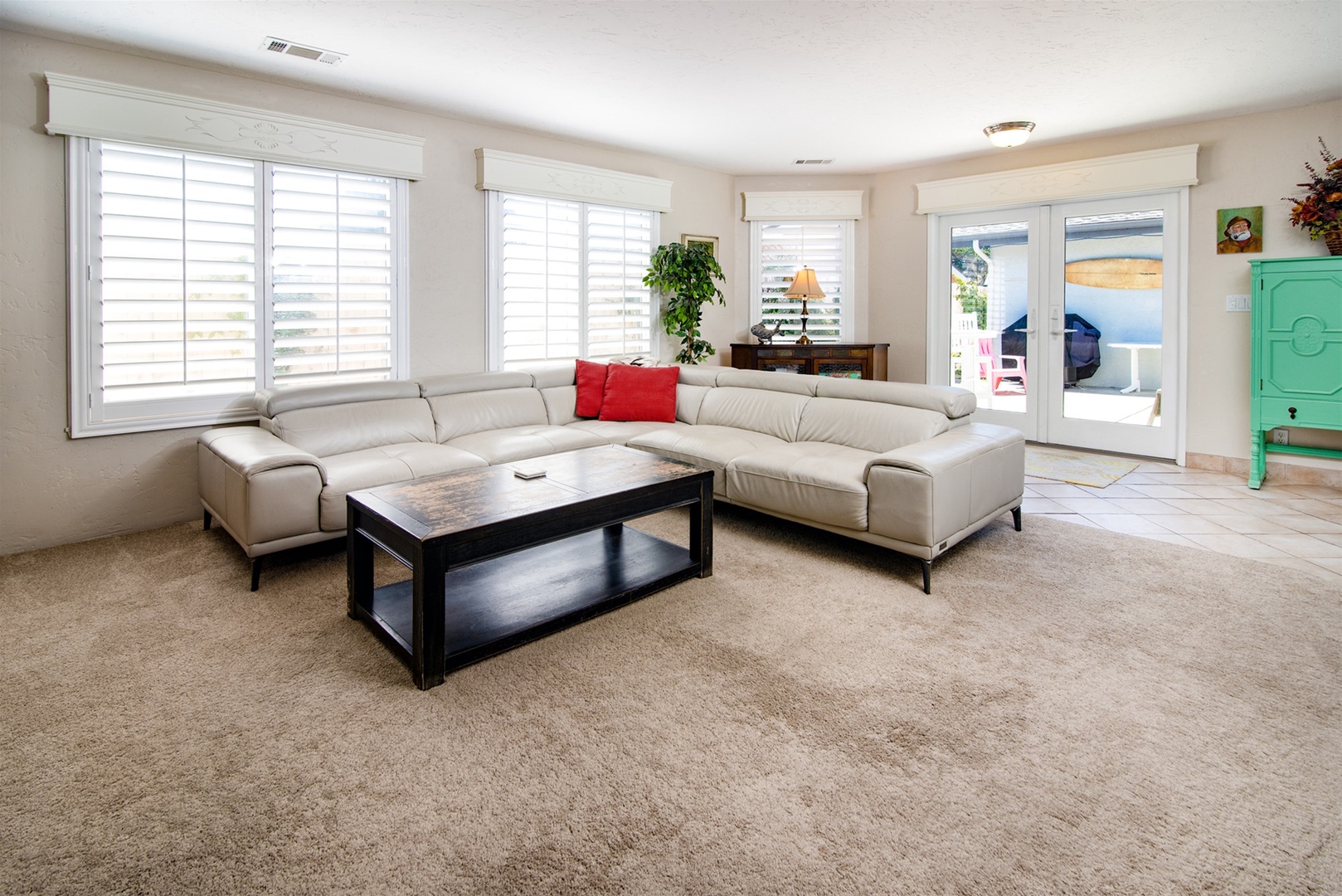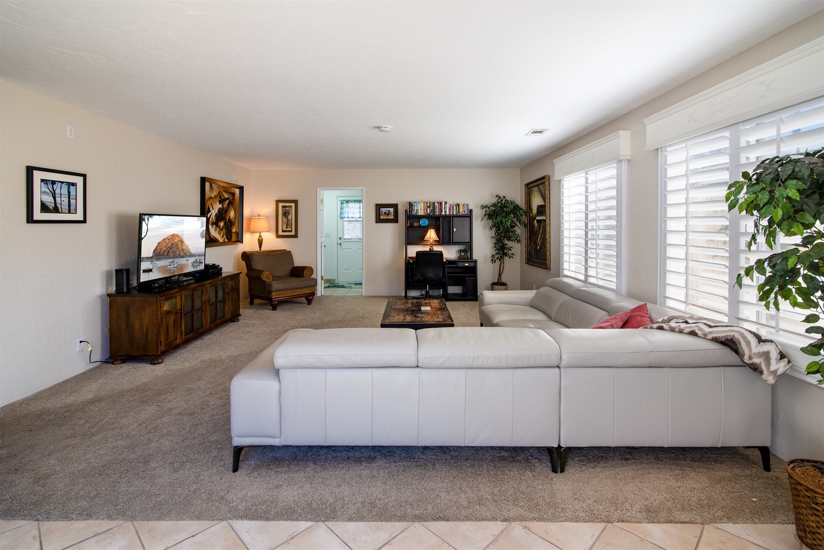 • Den with a large sectional couch and flat screen TV with Roku and streaming cable via Hulu Live