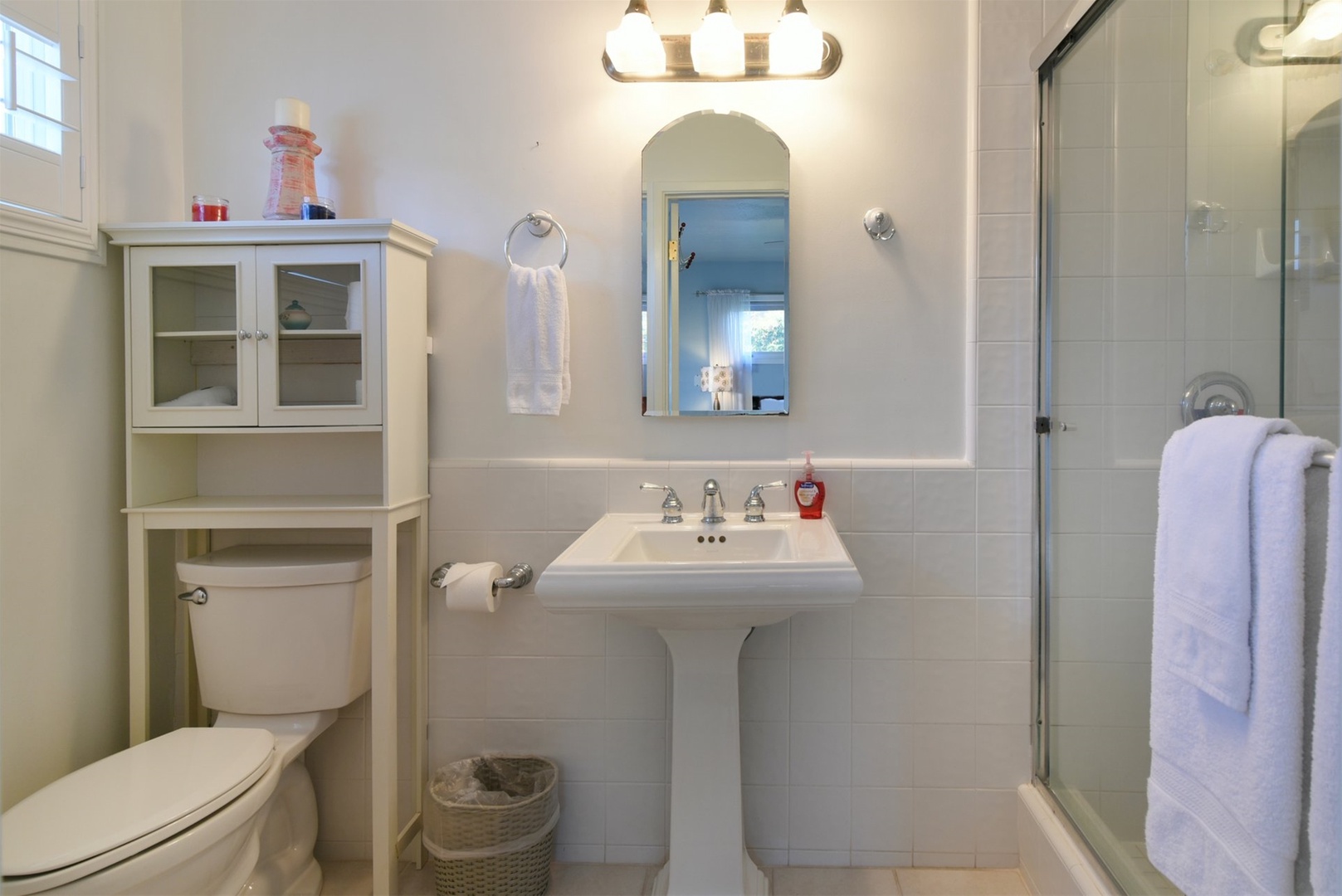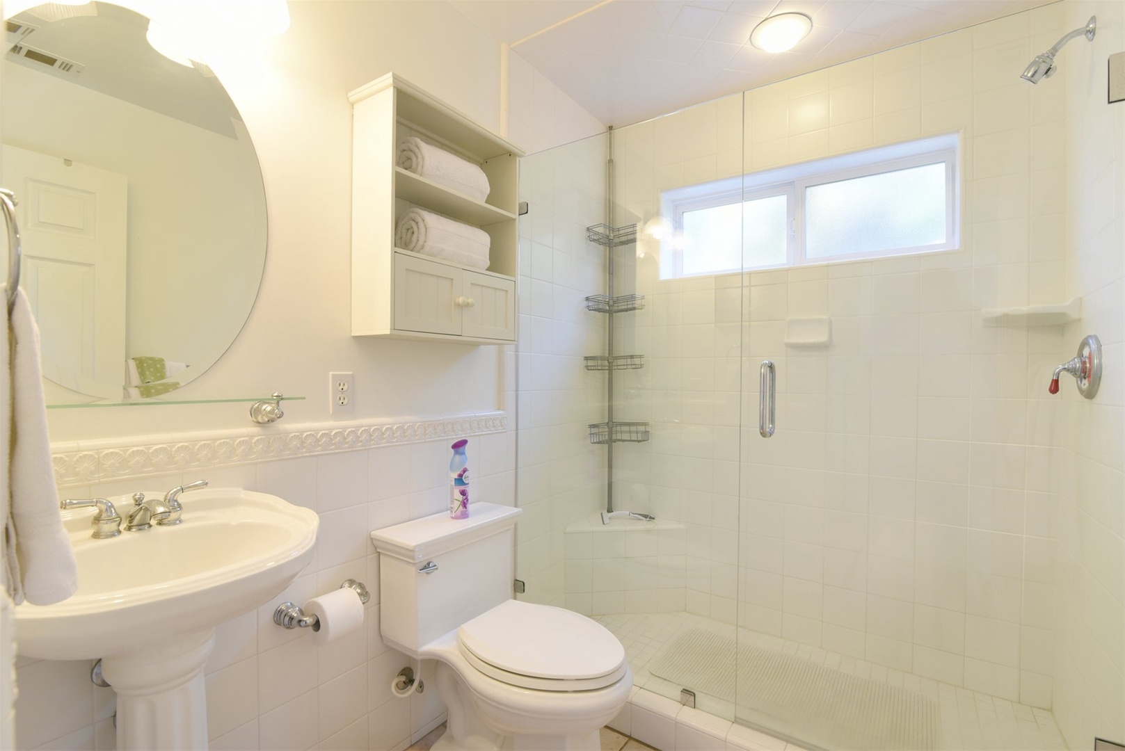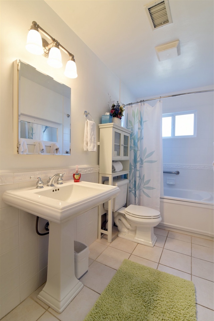 The hall bath is shared by bedrooms 2 and 3 and has a shower/tub combo