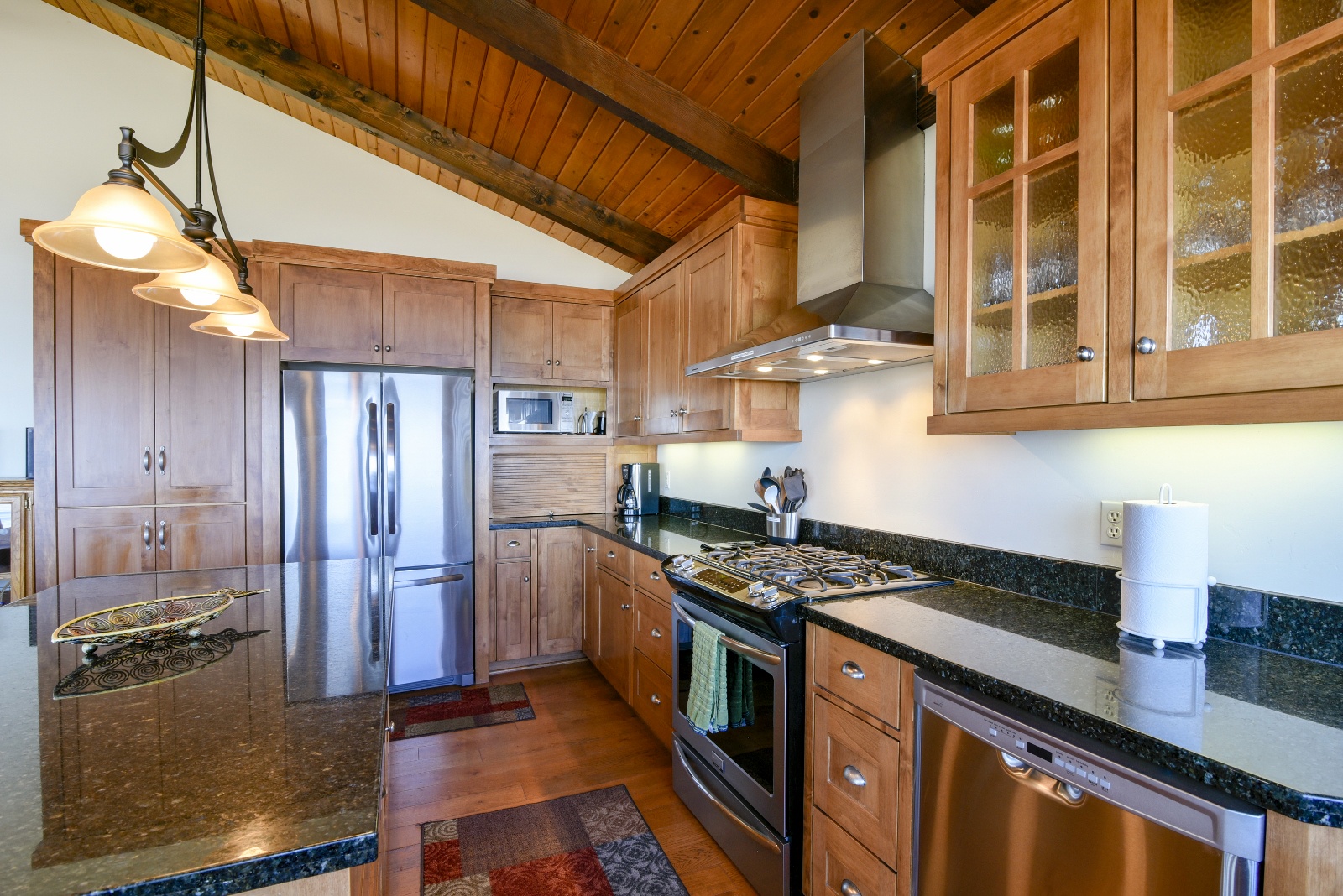 Whether you're heating up tacos from the local market or going full gourmet, the kitchen has you covered, complete with granite countertops, beautiful cabinetry, and all the essentials. And for the grill masters in your crew? Fire up the gas BBQ while you watch the waves roll in.
