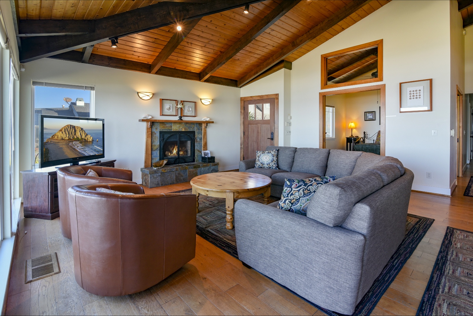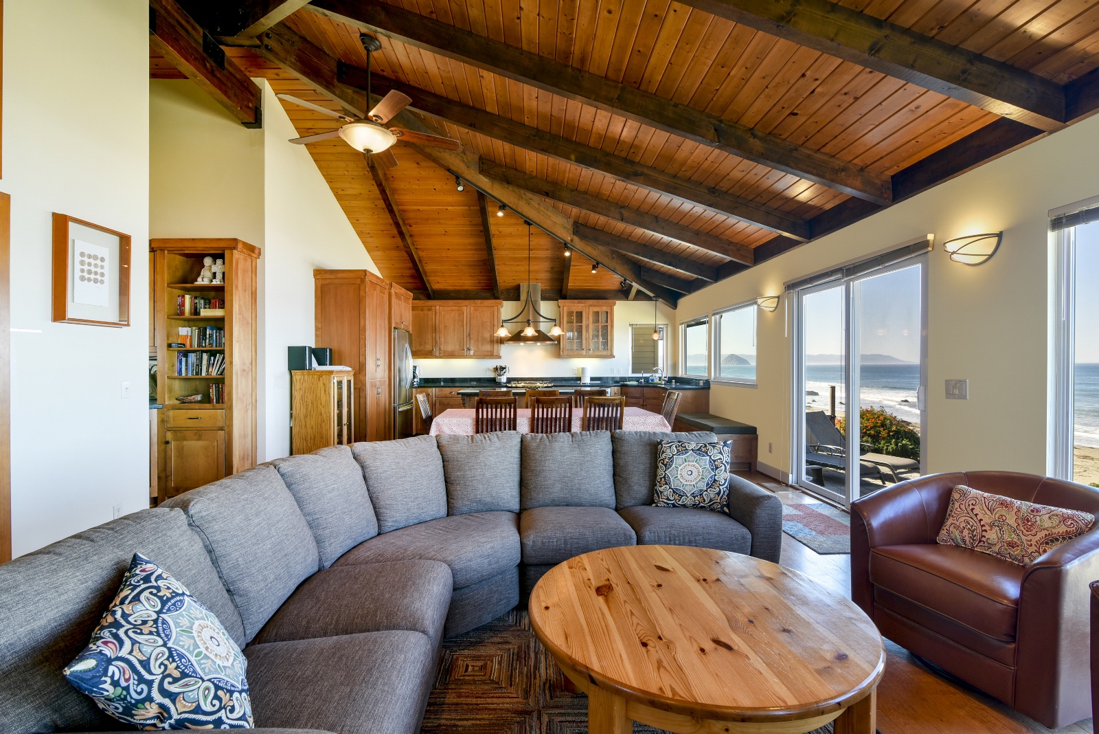 • Front-Row Ocean Views: Floor-to-ceiling windows frame Morro Rock to your left, the Cayucos Pier to your right, and unforgettable sunsets every evening all year round.
