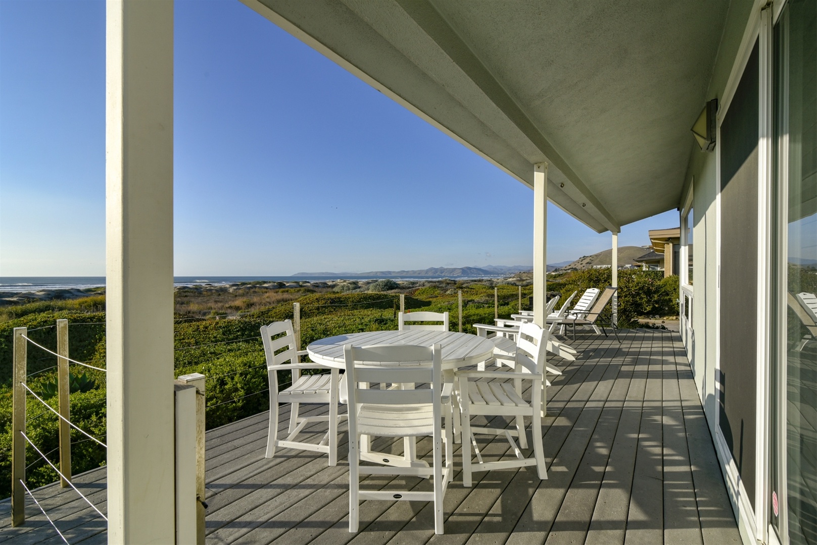 This wonderful oceanfront home offers you the perfect beach vacation! Everyone dreams of vacationing in a home where your whole view is filled with nothing but the beach and ocean and this home delivers on that dream! The common living area has wall-to-wall windows where you can constantly view the many changing ocean scenes and amazing sunsets! Hear the waves crash, see the pelicans soar by and feel the ocean breezes on your face as you savor that wonderful glass of local wine on the deck! To get to the beach, just head out the front door where you will find a short path through the dunes that leads you to the Morro Strand State Beach. Here you can walk for miles in either direction on white sand beaches. It doesn't get better than this!