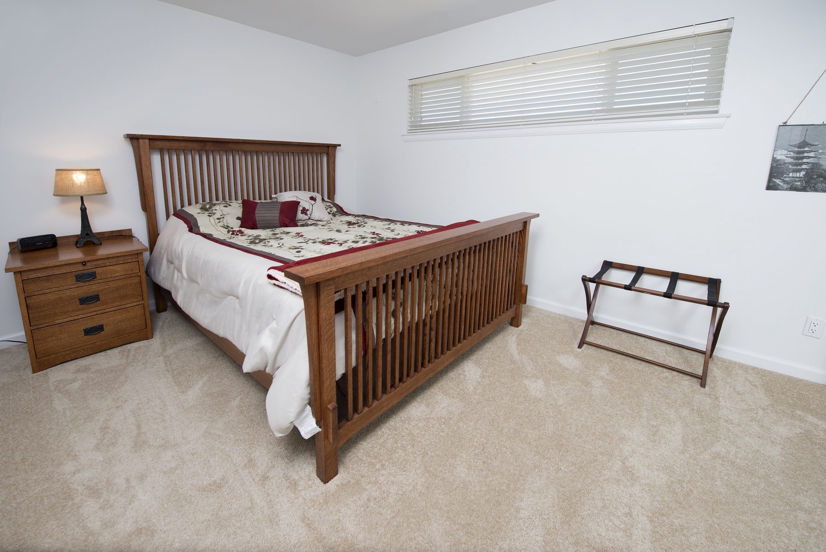 The 2nd bedroom has a queen bed and is nicely decorated.