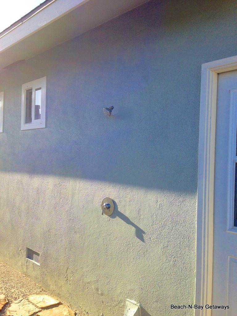 An outside shower is available to wash off after a day at the beach.