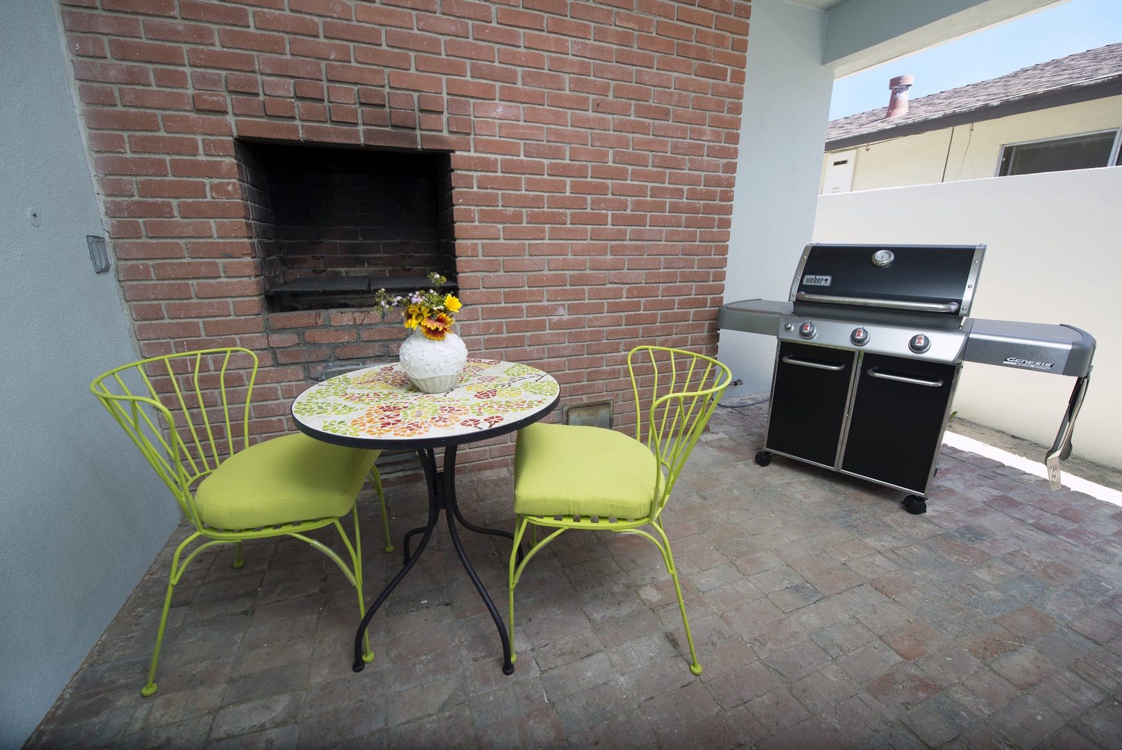 The patio area has a nice seating area to chat and a high end Weber BBQ.