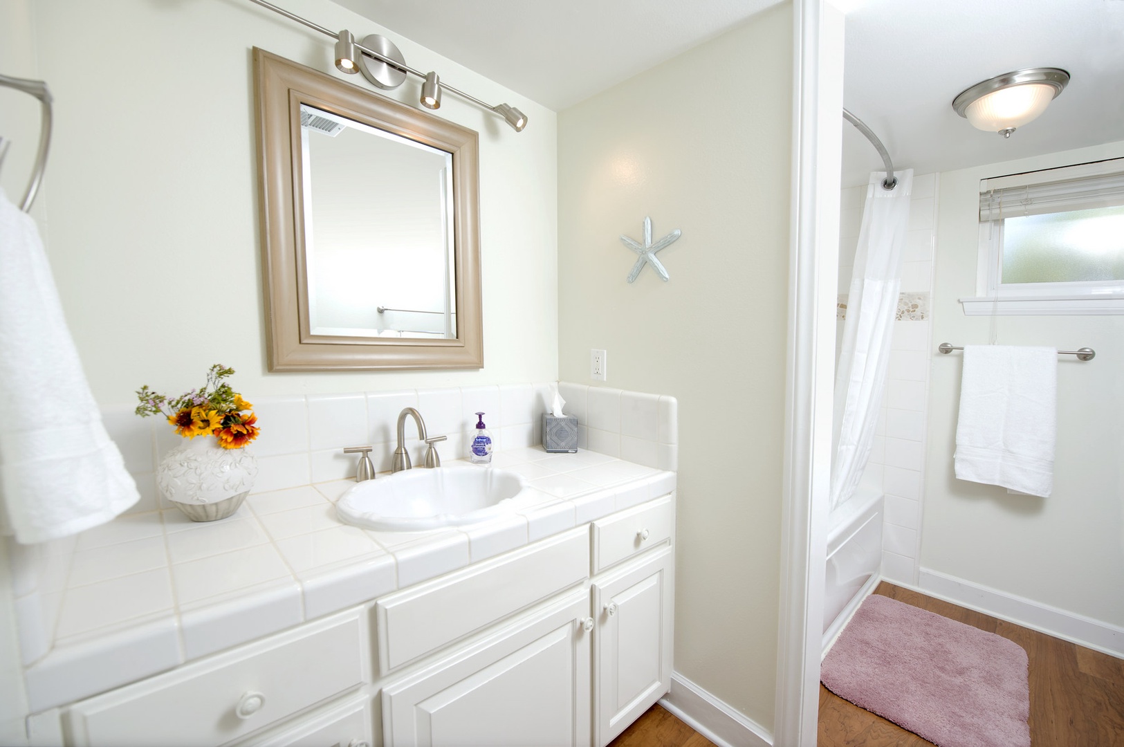 • Hall bathroom has a combination bathtub/shower.