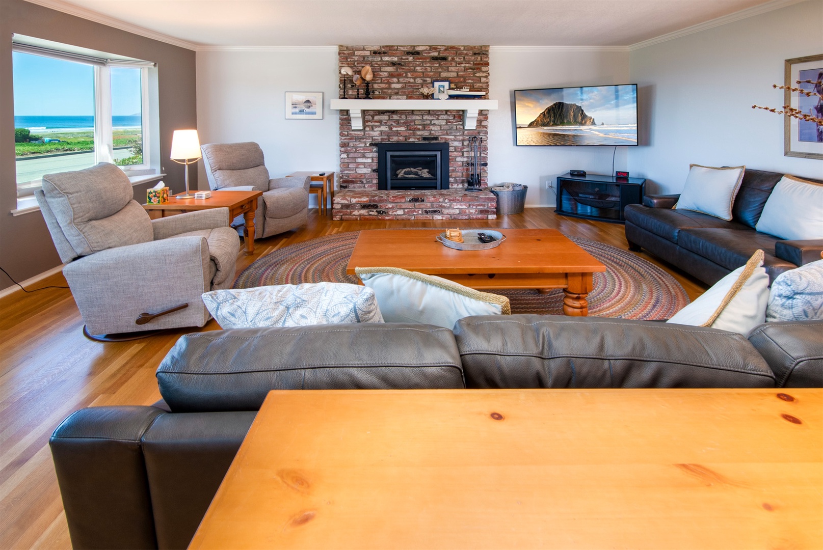 Inside, you’ll find all the comforts of home, along with thoughtful extras to make your stay extraordinary. The living and dining areas feature wall-to-wall windows, offering stunning ocean views right at your doorstep. Relax by the fireplace, sink into the comfortable sofa, or enjoy a cinematic family movie night on the large flat-screen TV. Share meals or play games around the dining table or challenge each other to a friendly ping-pong match in the garage. Plus, you’ll have access to a full set of beach gear (chairs, umbrellas, towels, and more!) for endless coastal adventures. With three wonderfully furnished bedrooms and ample outdoor spaces to enjoy, this is truly the perfect place to call home for your next getaway.