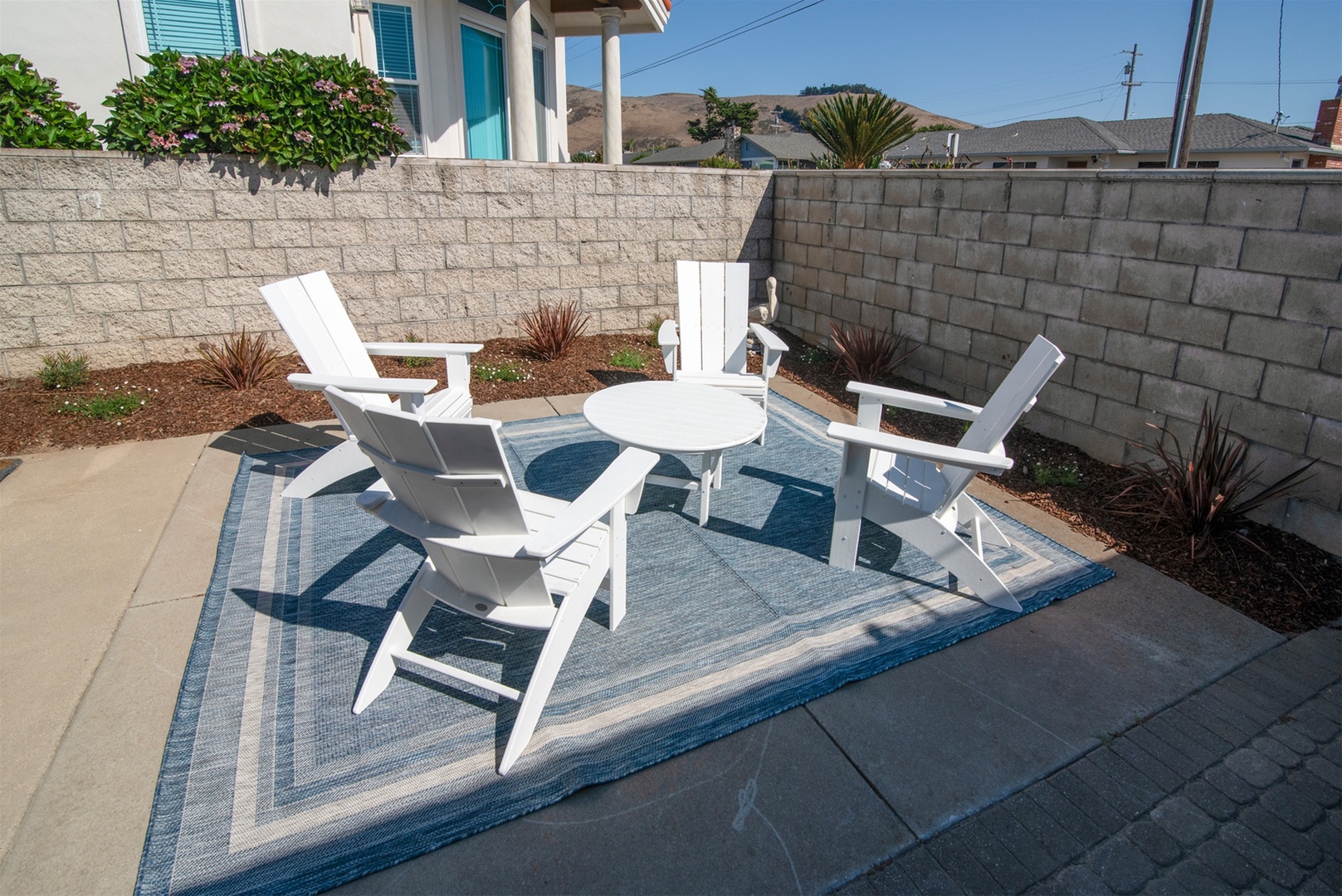 The enclosed back yard has a BBQ grill for guest use and has a lovely area for outdoor dining.
