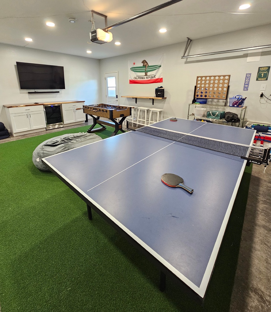 • Ping pong table located in the garage, perfect for fun and friendly competition with your group.