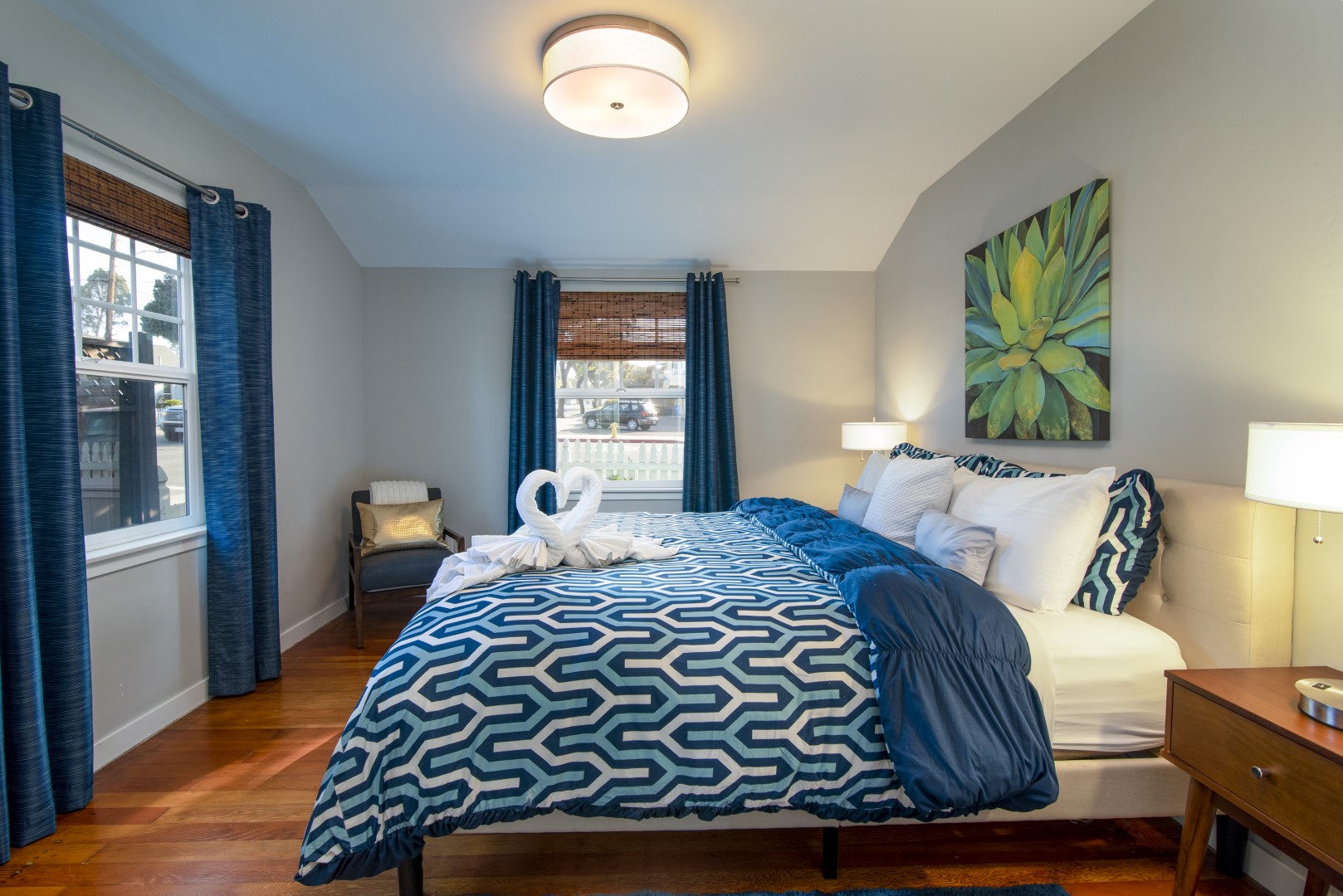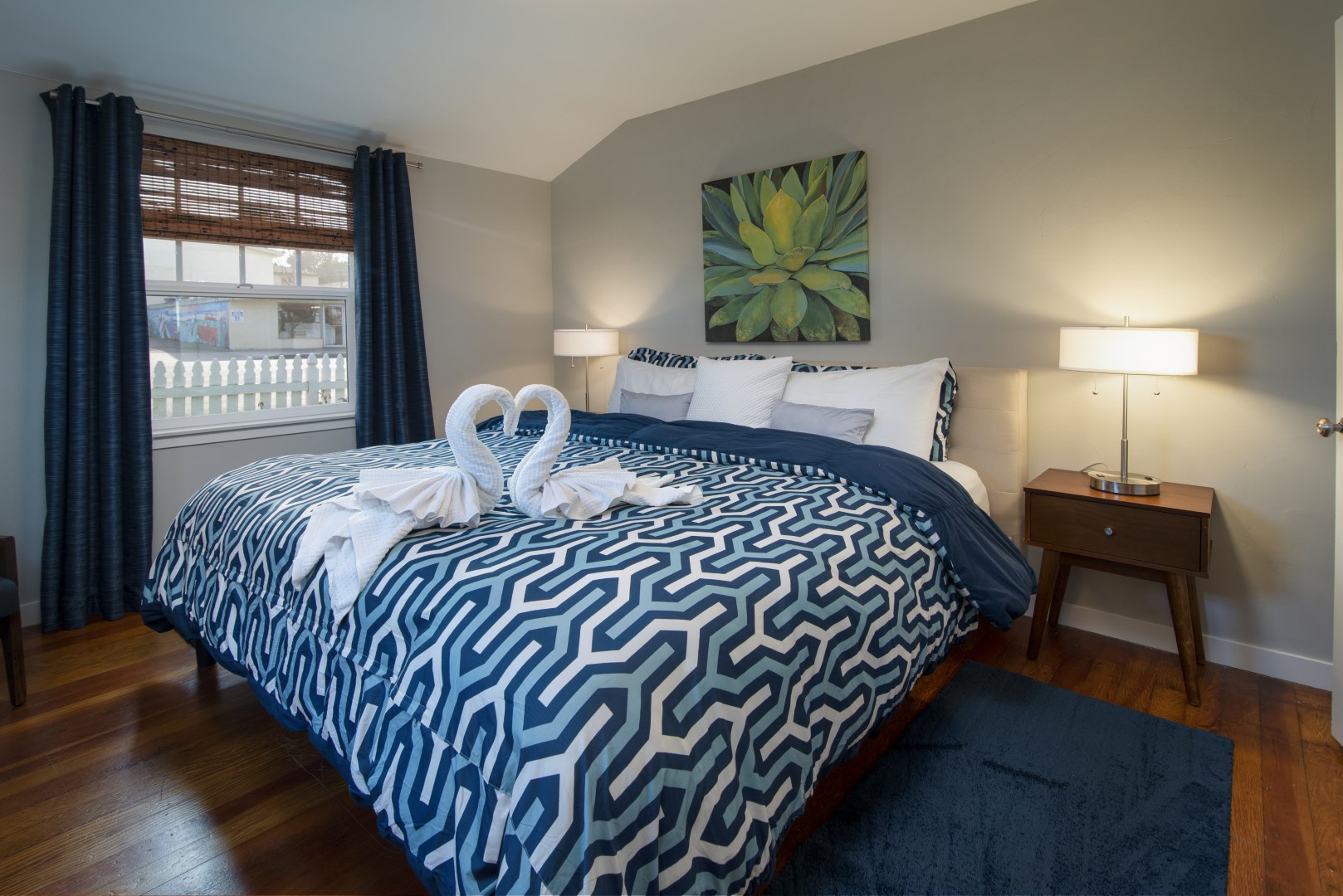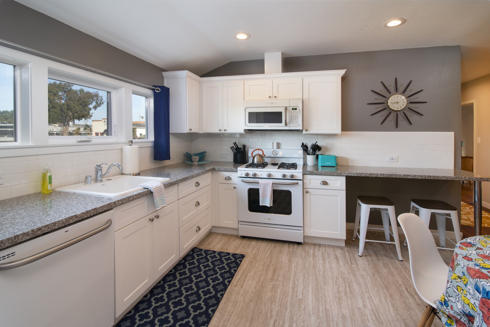 In an ideal downtown location, this modern 3 bedroom, 1 bath bungalow was recently renovated and has everything you need for the perfect Morro Bay Getaway. You’ll enjoy views of Morro Rock from the back deck and are only 4 short blocks from the Embarcadero. With this vacation rental you have the option to park your car and not need it until its time to leave! The home is decorated to match the style and décor of the year the bungalow was built. Fresh and modern, you will enjoy every detail of this rental.