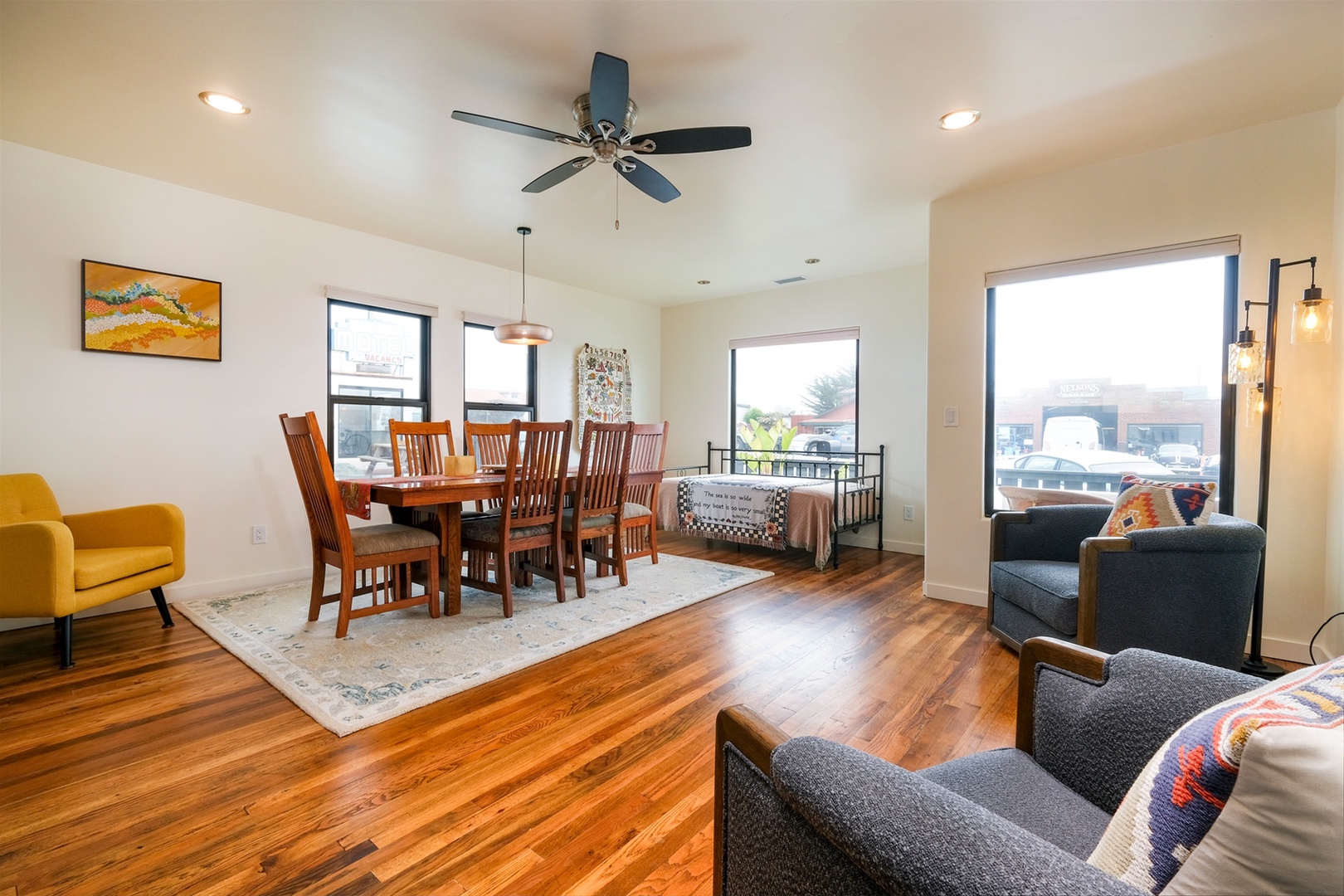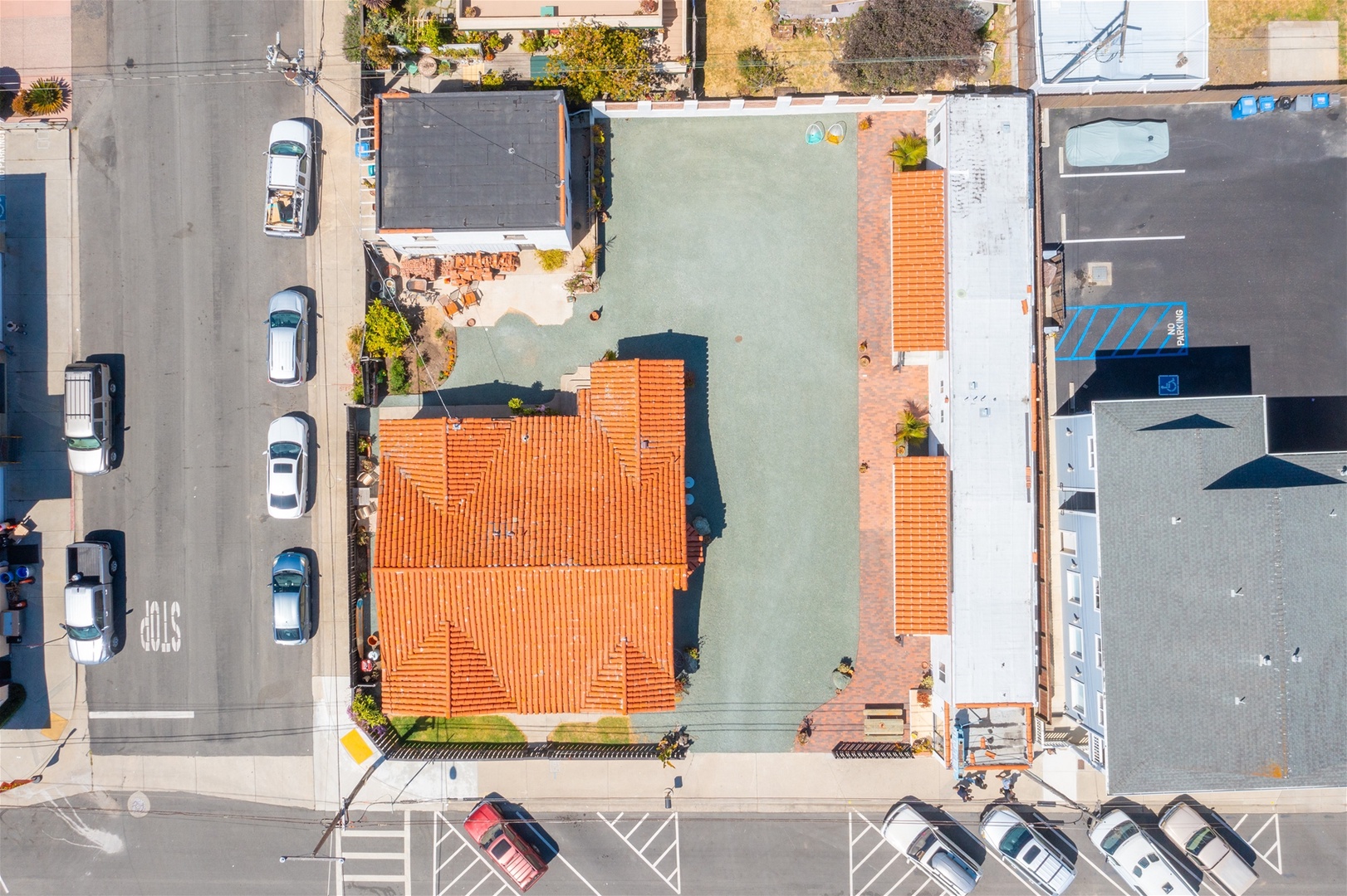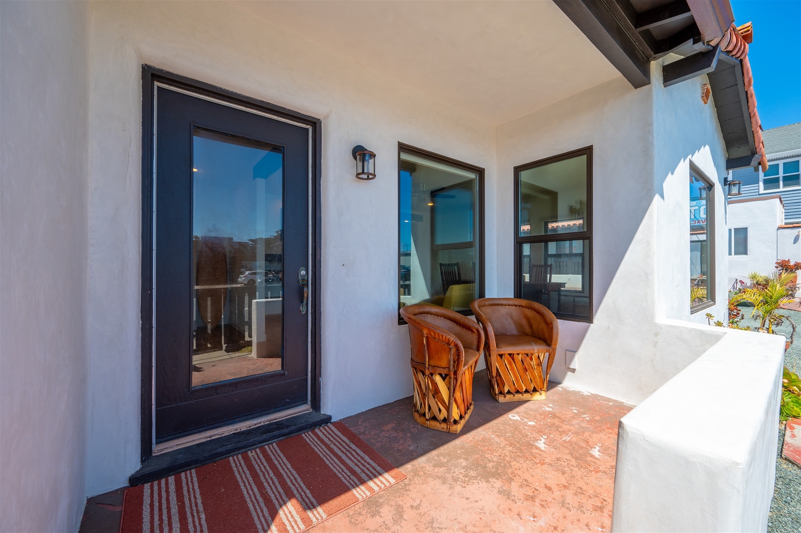 • Front patio with mission style seating, enjoy the coastal views and people watching as locals and vacationers pass by on their strolls to the beach and downtown.