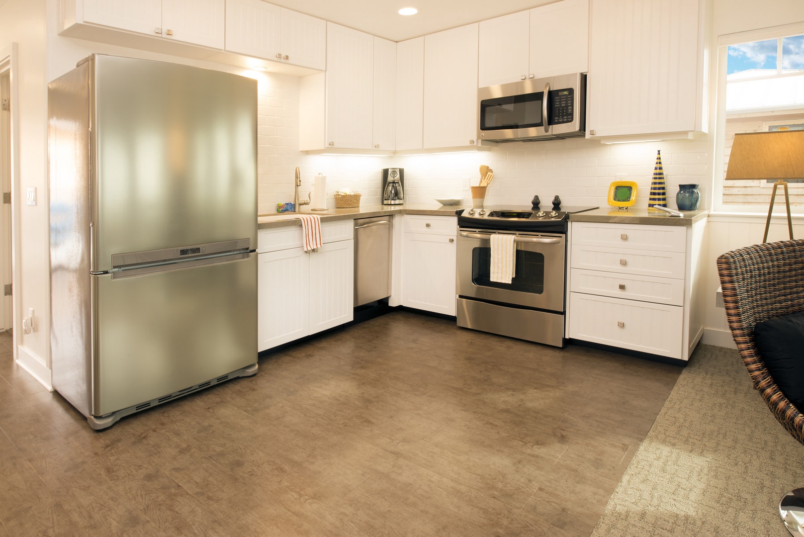• Kitchen has a full-size refrigerator and oven with everything you need to prepare a meal