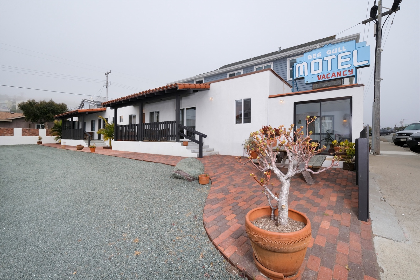 The iconic Sea Gull Motel was purchased and completely renovated by a local family in a stunning, 1930’s vintage mission/Santa Barbara style. The motel consists of 3 separate units; the main home has 3 bedrooms and 2 baths and can accommodate 8 adults or 9 with children. 2 Units are one bedroom with either 1 or 2 baths and can accommodate 4 or 5 guests depending on the unit. For larger groups all three units can be rented to accommodate up to 18 with children. You’ll be delighted with the finish and attention put into this property. With an unbeatable location, just a couple of blocks from the heart of downtown Cayucos, it is the perfect spot for your vacation. This property has earned dozens of 5 star reviews and the management has been recently handed over so the family can focus on other projects. Contact us today to secure your vacation at this truly special property.